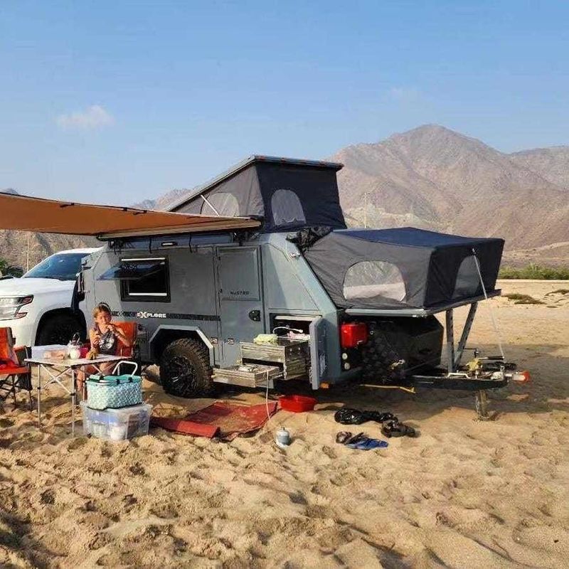 Entworfen für Gelände-Enthusiasten von Gelände-Enthusiasten, verfügt der Offroad Trailer Explorer über ein geräumiges Interieur, mit Schlafzimmern, einer voll ausgestatteten Küchenzeile,Und genügend Stauraum für all deine Ausrüstung.Egal, ob Sie sich auf einen Wochenendausflug oder eine Langlauf-Expedition begeben, dieser Wohnwagen sorgt dafür, dass Sie für jedes Abenteuer gut ausgerüstet sind.